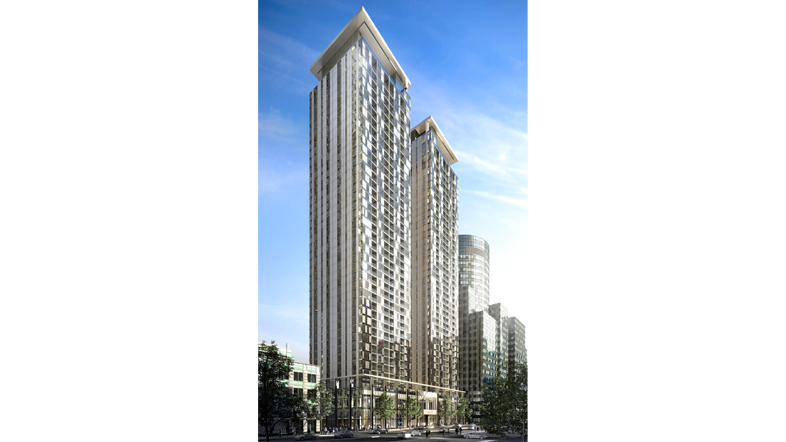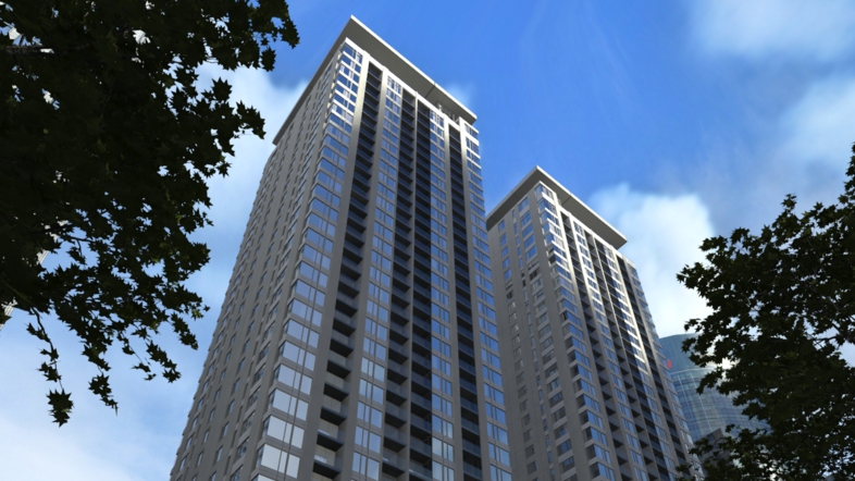 Две 40-этажные башни соединяются общим входом, выходящим прямо на бульвар Рене-Левек. Можно купить кондо с 1й, 2мя или 3мя спальнями, у каждого есть своя отдельная лоджия.